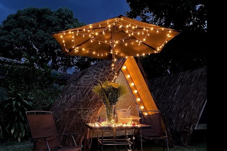 pequenas cabanas para até duas pessoas. Possuem colchão de casal,